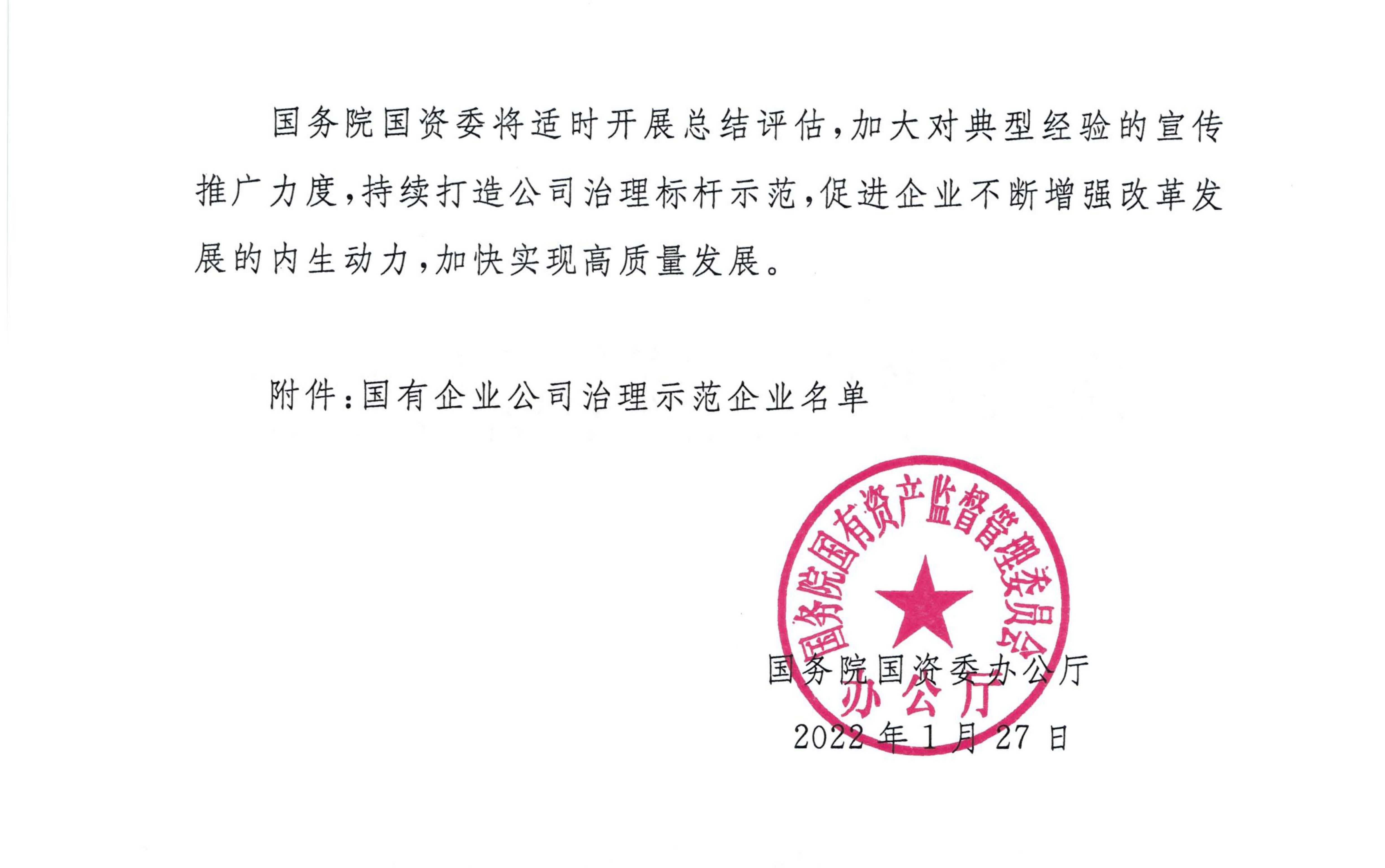 為加快推進中國特色現代企業制度建設,落實“兩個一以貫之”要求,國務院國有資產監督管理委員會(以下簡稱“國務院國資委”)組織中央企業和地方國資委認真開展國有企業公司治理示范企業創建活動。