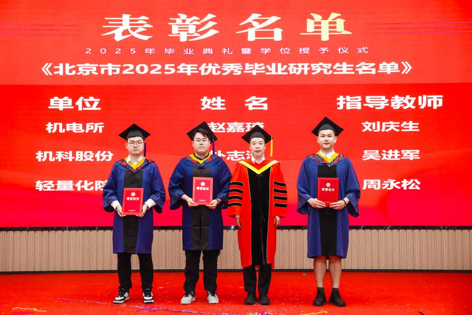 研究生院傾力打造的智慧課程虛擬AI助教“科小研同學”作為典禮第二主持人登上舞臺,現場宣讀了2025年北京市優秀畢業研究生、機械總院優秀畢業研究生、優秀學位論文、科技創新成果獎獲得者名單,孟祥宇、李玉鑫、王宇、姜超分別向獲獎同學們頒發榮譽證書。