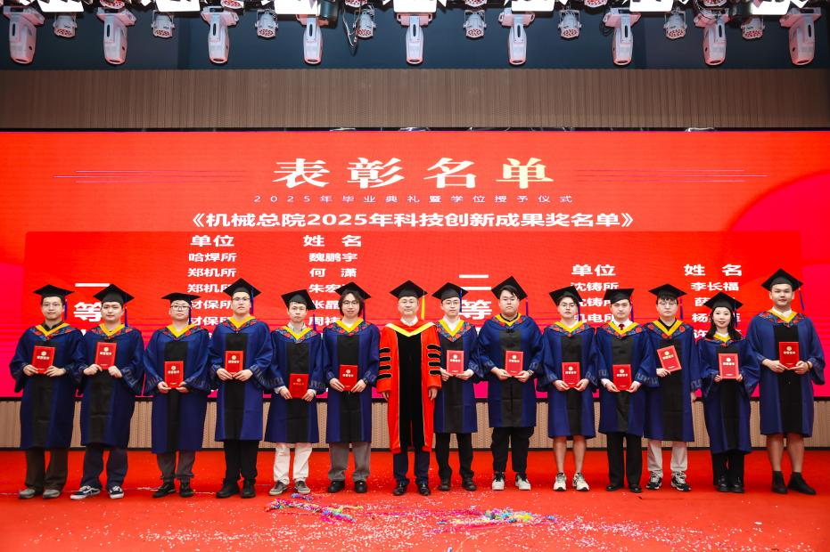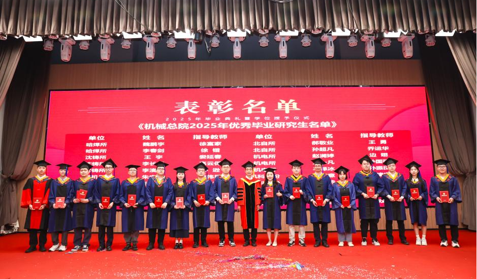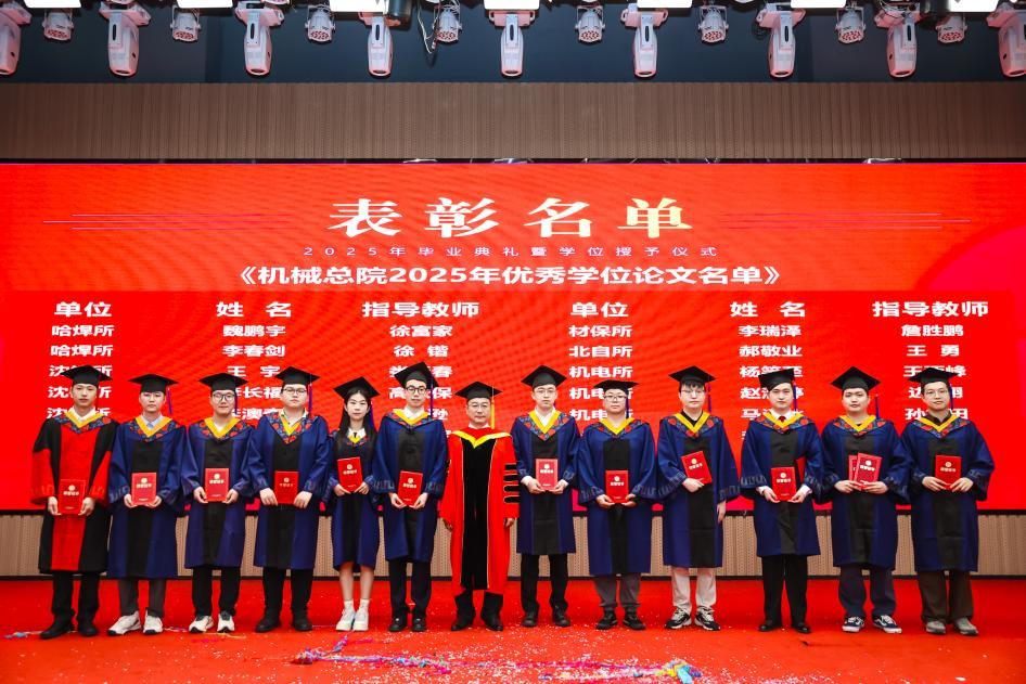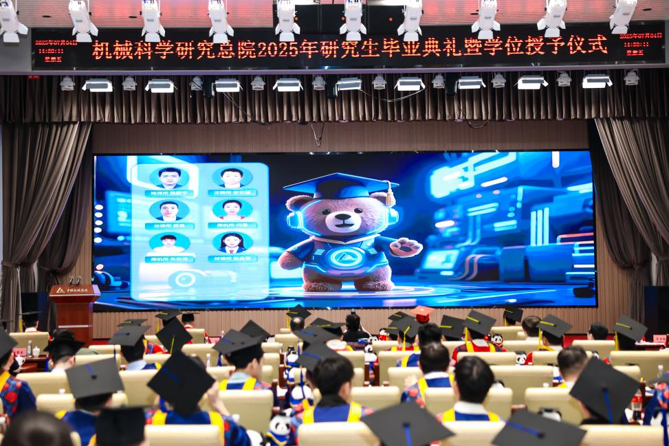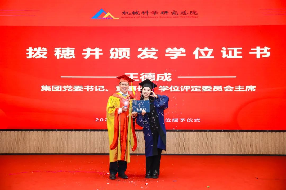 李愛國宣讀了《機械科學研究總院2025屆畢業生學位授予決定》,王德成為每位畢業生撥穗正冠并頒發學位證書。